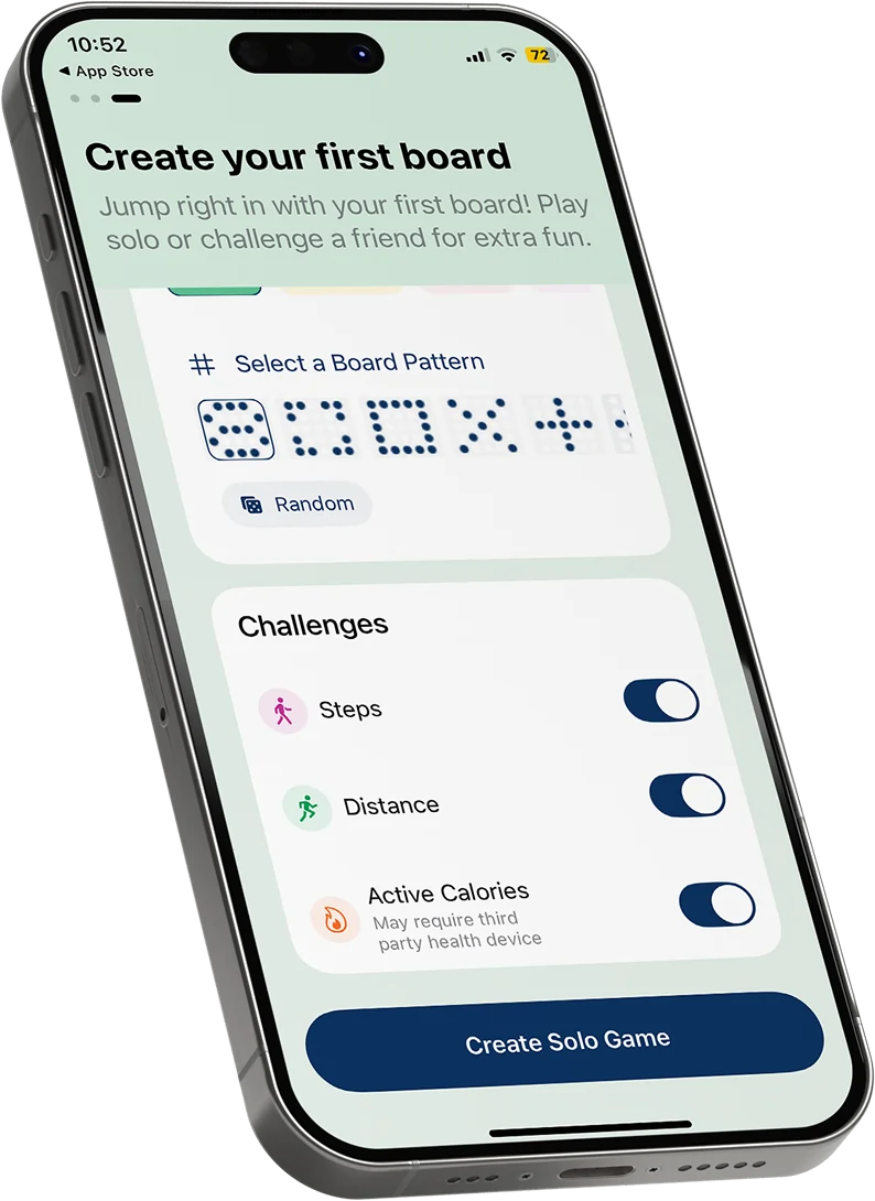 Each fitness Bingo board has different patterns to complete. Choose your pattern and difficulty level and then challenge yourself or a friend in solo and versus modes.